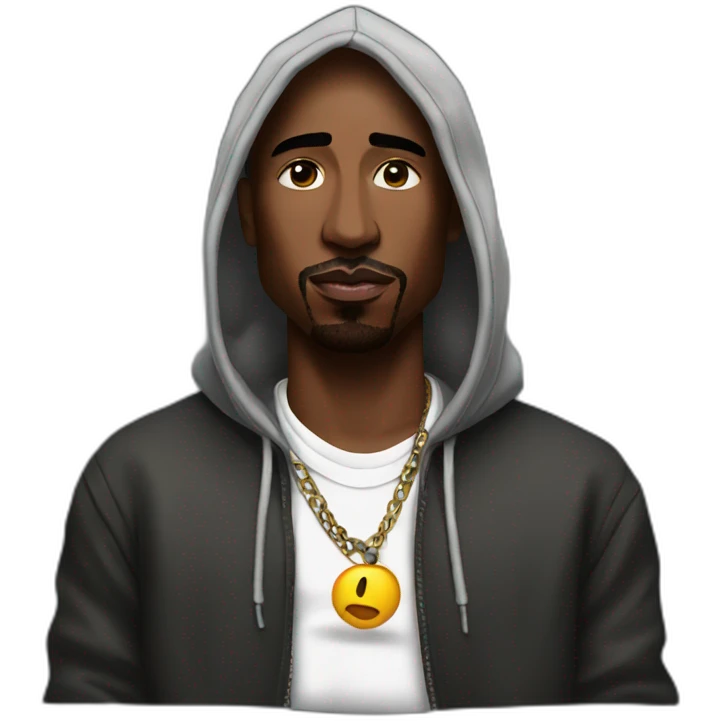 tupac wearing a hoodie emoji | AI Emoji Generator