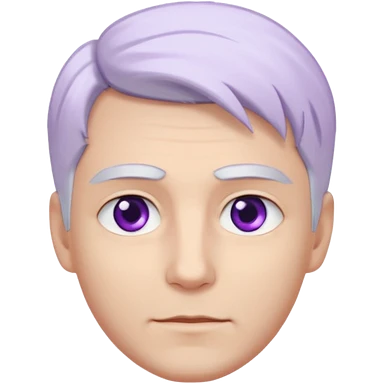 Beyaz göğüs hizasında düz saçları,mor-mavi karışımı göz rengi olan, bembeyaz tenli bir erkek emoji