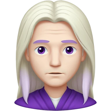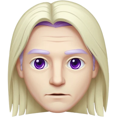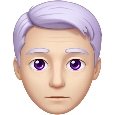 Beyaz uzun ve düz saçları olan,mor göz rengi olan, bembeyaz tenli bir erkek,genç emoji