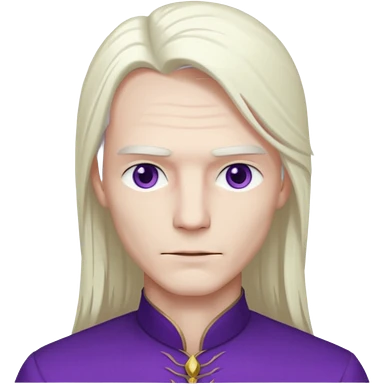 Beyaz uzun ve düz saçları olan,mor göz rengi olan, bembeyaz tenli bir erkek,genç,gözleri hafif çekik ve saçları da teni de bembeyaz olacak,genç olacak,kırışıklığı olmayacak,gözleri çekik ve mor renk olacak emoji