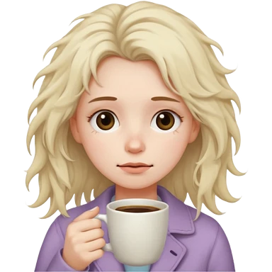 tired woman with dark circles under eyes holding a coffee cup, messy hair, soft pastel emoji style, calm neutral background emoji