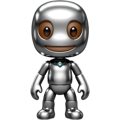 Turn this Sackboy character in the photo into 3D chrome metallic style, highly reflective and shiny, with realistic details emoji | AI Emoji Generator
