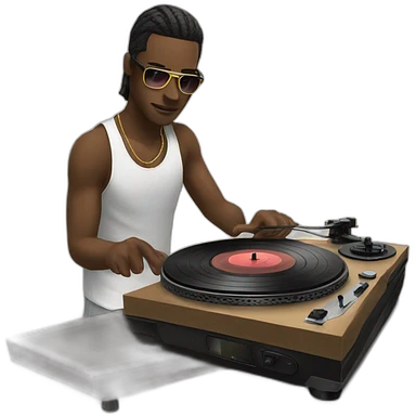Technics turntable, perfect and clean, smooth waxy surface, realistic platter and tonearm details, silver and black emoji