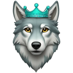 gray wolf with dark turquoise eyes with a golden crown emoji
