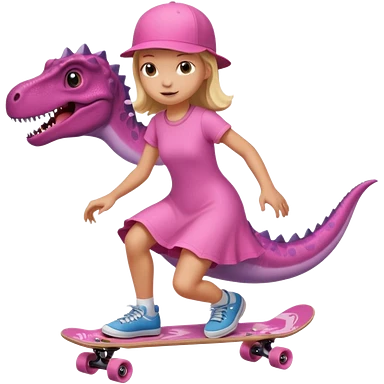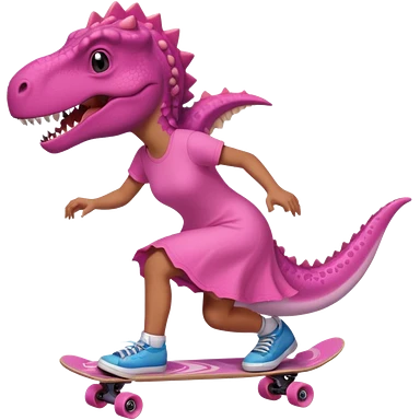 Dinosaur on a skateboard in pink emoji