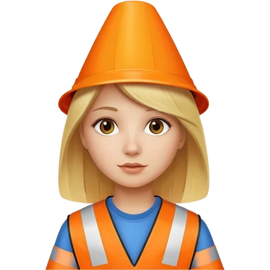 Blond girl wearing traffic cone emoji