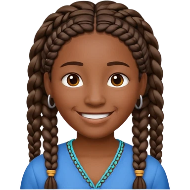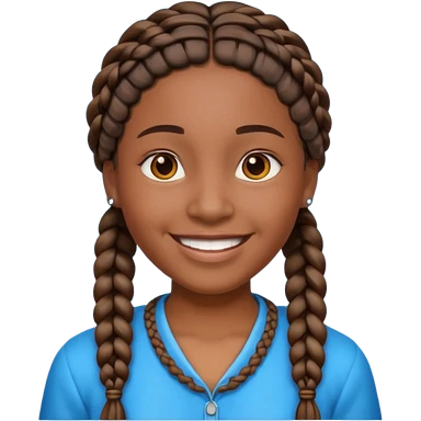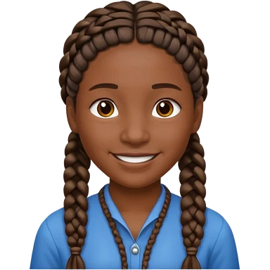 girl mixed skin tan has black and brown braids and medium size lips smiling and brown eyes and a black turtle neck holding up a peace sign emoji