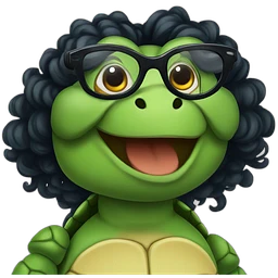 Woman with black hair and strokes of white in hair and turtle glasses emoji
