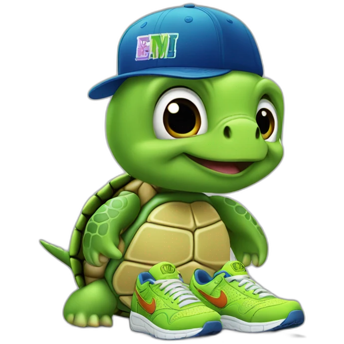 turtle with nike shoes on and a nyc cap emoji | AI Emoji Generator