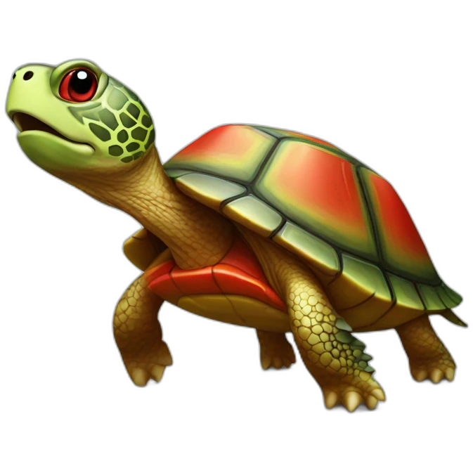 cute plushie turtle with light pink skin, round head, and red shell, smooth skin texture emoji