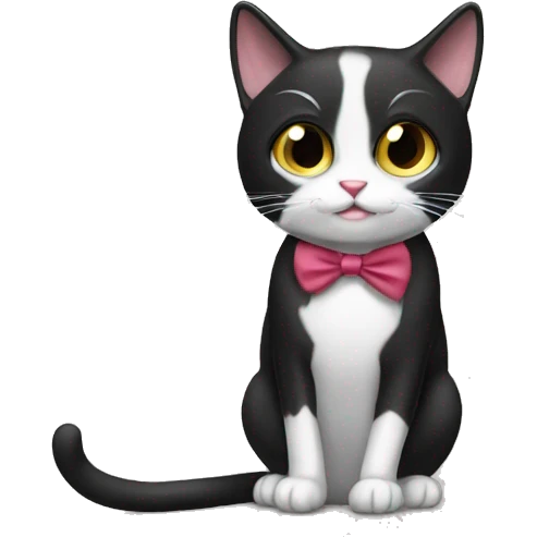 Tuxedo cat with pink nose, green eyes and no bow ties emoji