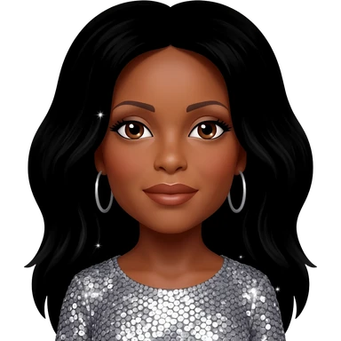 Diana Ross with brown eyes, long black hair, silver sequin outfit emoji