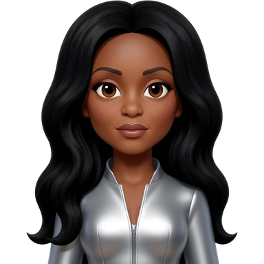 Diana Ross with brown eyes, long black hair, silver metallic outfit emoji