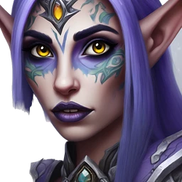 Night Elf Elsa in Warcraft style, oil paint, mysterious eyes, intricate lips, masterpiece portrait, beautiful, desirable, logical emoji