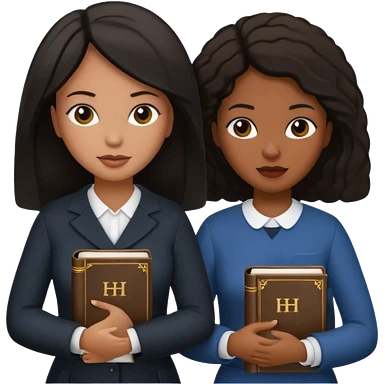 Two black women, 1 white woman, all with dark hair, carrying a Bible! emoji