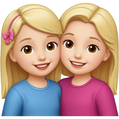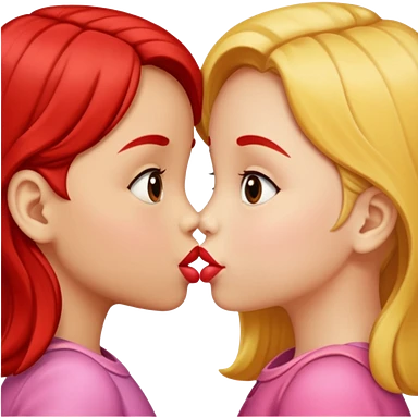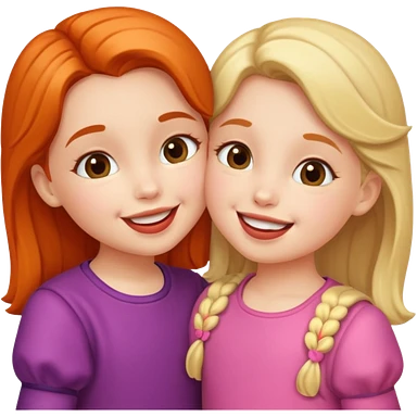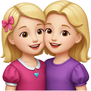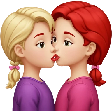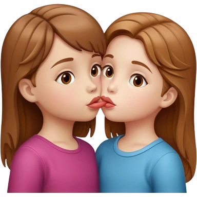 two 5 year old gals about to kiss on the lips, lips extremely close but not touching, pink shirts, long brown hair emoji | AI Emoji Generator