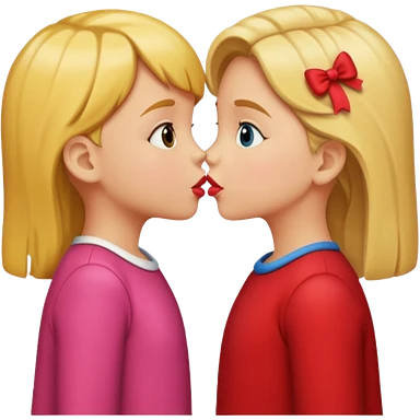 two 5 year old gals about to kiss on the lips, lips extremely close but not touching emoji