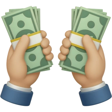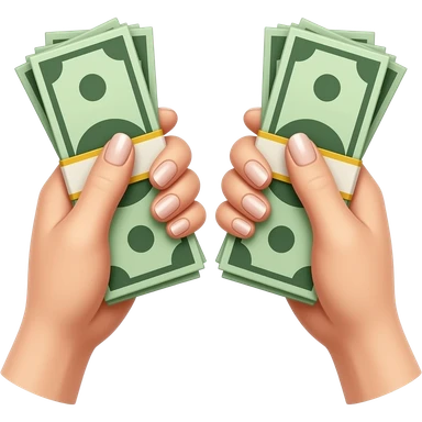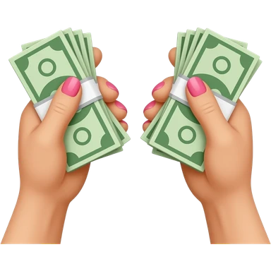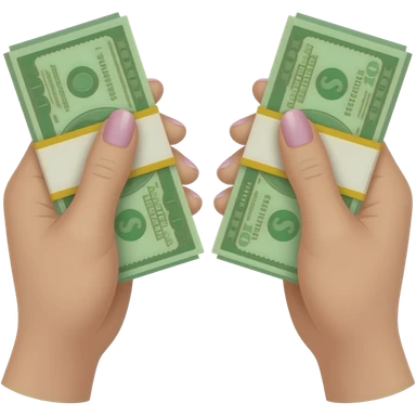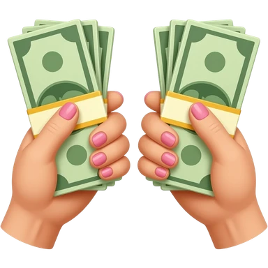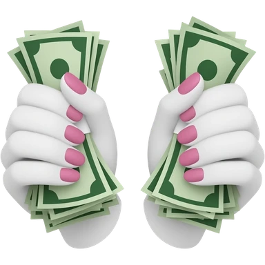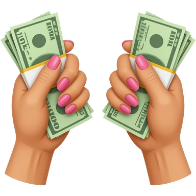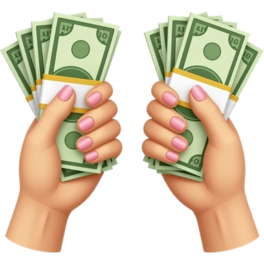 Two white hands with long, pink nails, each clutching a wad of cash emoji