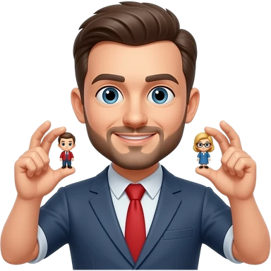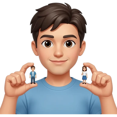 Male Holding two figures up to his mount, figures split while younger out liking between the fingers emoji
