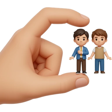 Holding up two figures split while younger out liking between the fingers emoji