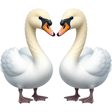 Create an image of two swans facing each other with their necks curved to form a heart shape. The swans should be positioned so that their beaks meet at the center of the heart, symbolizing love and unity. emoji