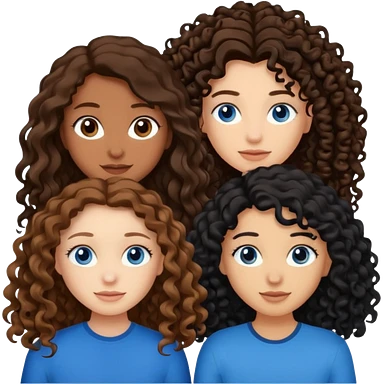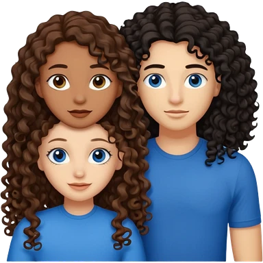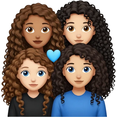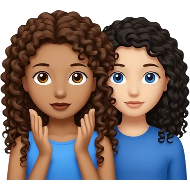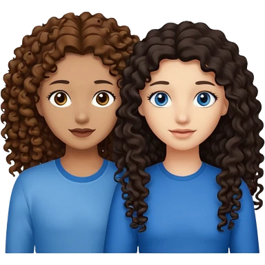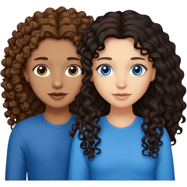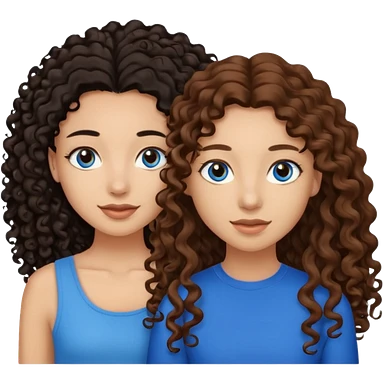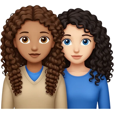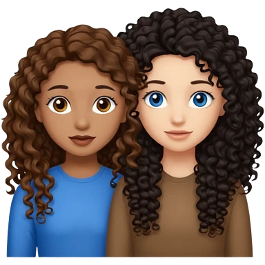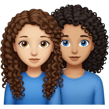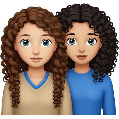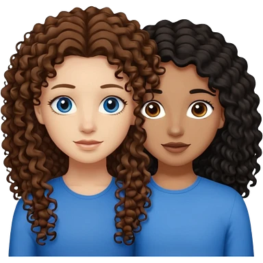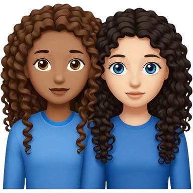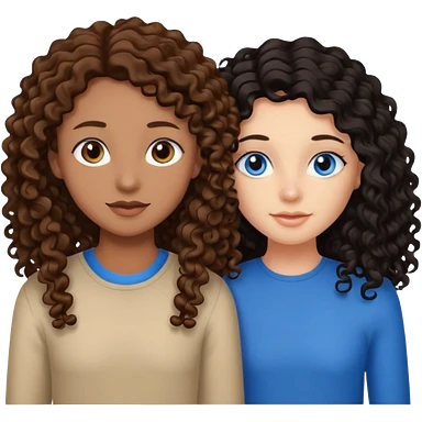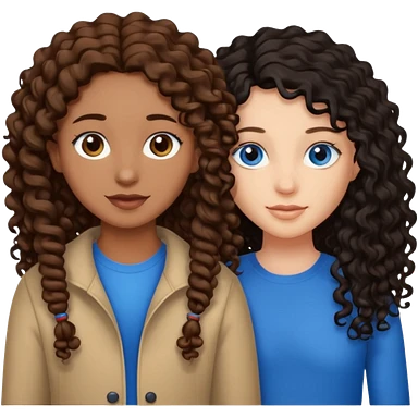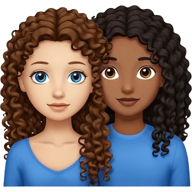 Two best friends .bestie 1: beige skin with brown long hair and blue eye. Bestie 2:mixed race skin with curly black hair and brown eye emoji | AI Emoji Generator