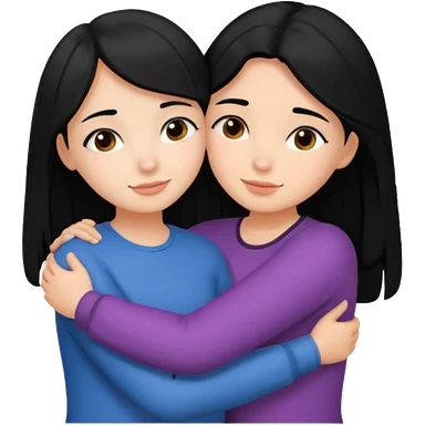 Two best friends hugging, one black girl and one white girl with black hair emoji | AI Emoji Generator