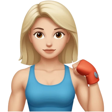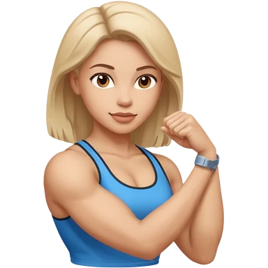 big biceps, muscled torso, very beautiful italian happy girl, looking like Emma Watson, with wavy curly bright hazelnut hair, dressed in a beautiful sports outfit, very muscled emoji