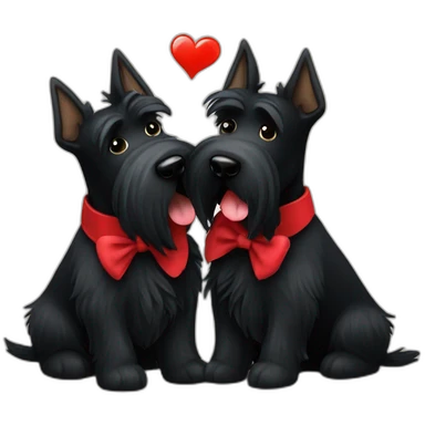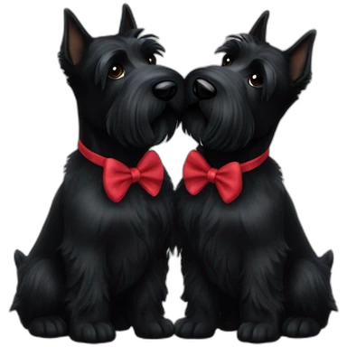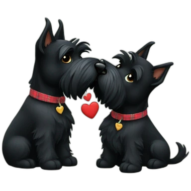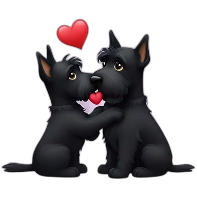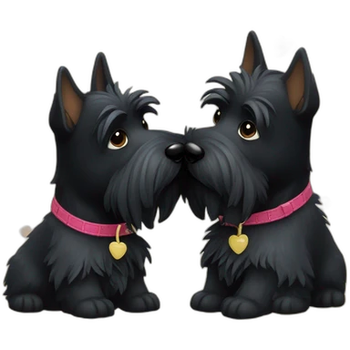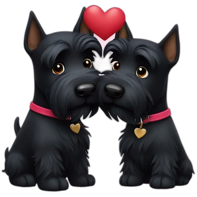 Two black Scottish terrier kissing one male one female emoji | AI Emoji Generator