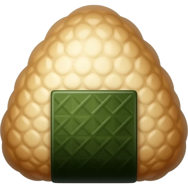 kawaii triangular onigiri emoji, convenience store rice ball wrapped in seaweed with a yellow label, simple cute icon style emoji