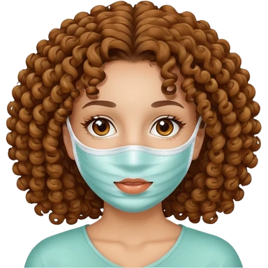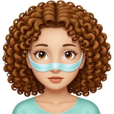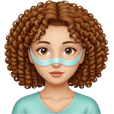 Girl with brow eyes and curly hair with mask for skincare emoji