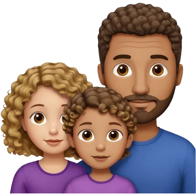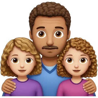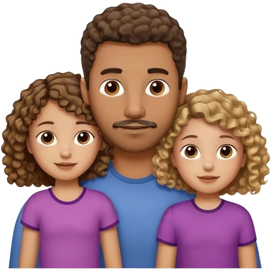 Brown dad with short fade with his two daughtersbone who is 5 and has curly brown and blone hair and one who is smaller who has wavy hair mixed race emoji