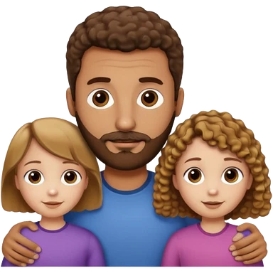 Brown dad with short fade and stubble beard with his two daughtersbone who is 5 and has curly brown and blone hair and one who is smaller who has wavy brown hair mixed race emoji
