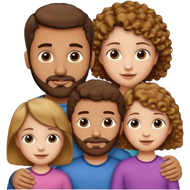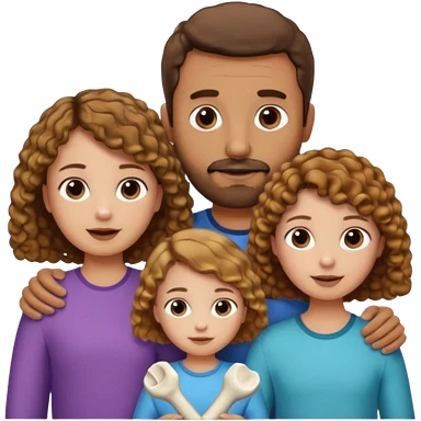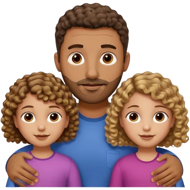Brown dad with a short straight hair cut and stubble beard with his two daughters bone who is 5 and has blone brown curly hair and one who is smaller who has curly hair brown emoji