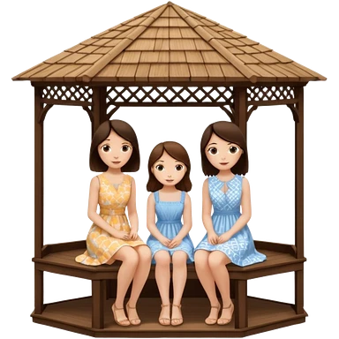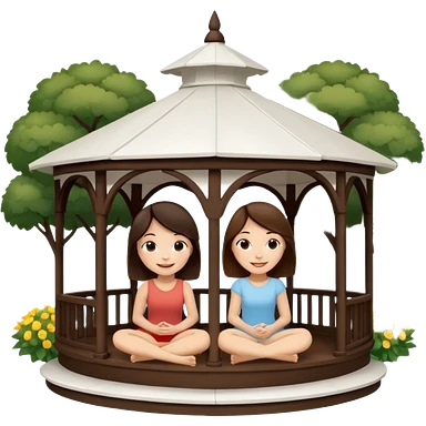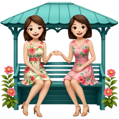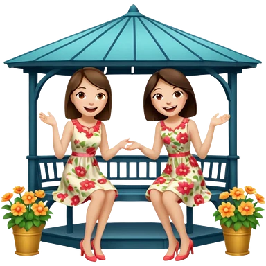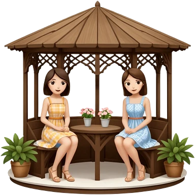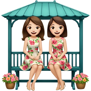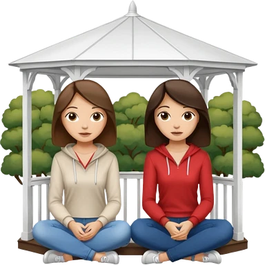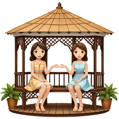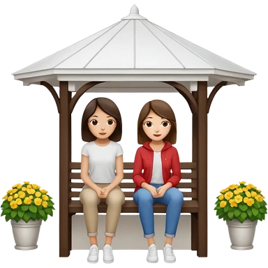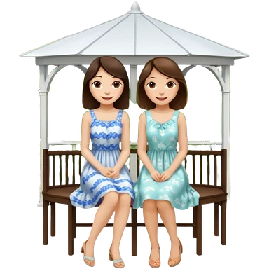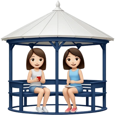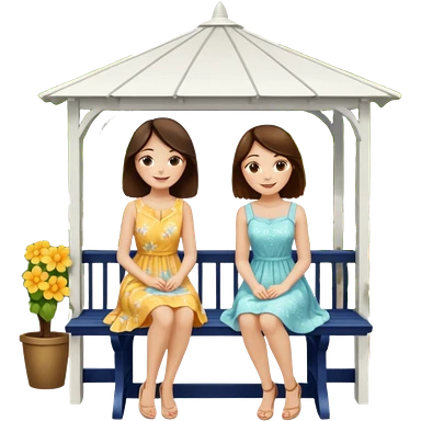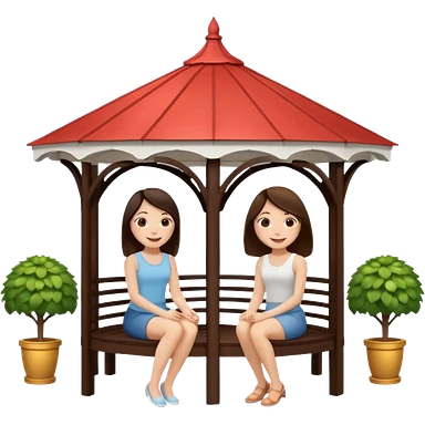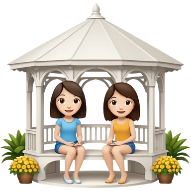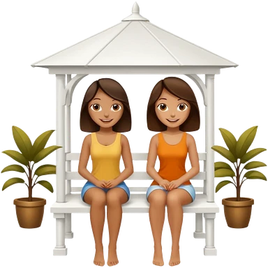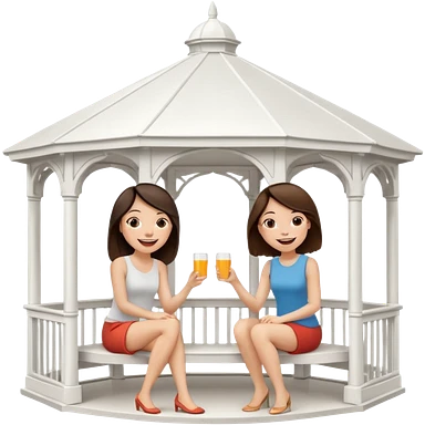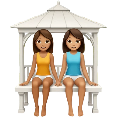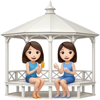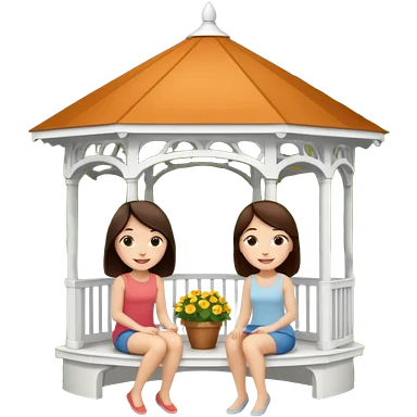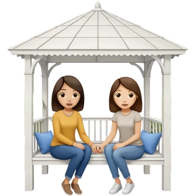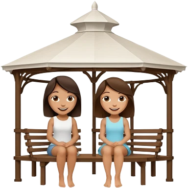 Two brunette women sitting on a white gazebo emoji | AI Emoji Generator