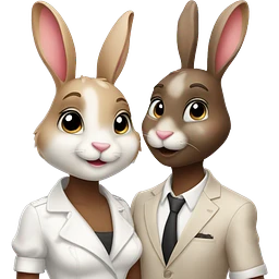 A black bunny rabbit and a white bunny rabbit in love. Designed only to show the outline of the bunnies and no hard detailing. emoji
