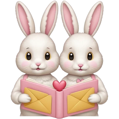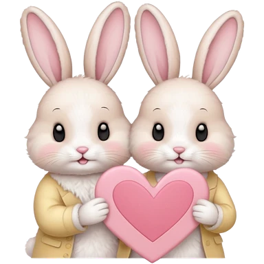 Two bunnies holding one Valentine card in soft pink, beige and yellow pastel colors emoji