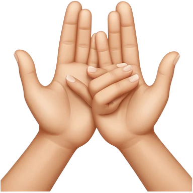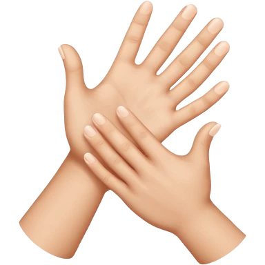 A 3D Apple-style emoji of two different cartoon hands clapping together in a fun "high five" gesture, only the hands are visible, surrounded by small motion lines and spark effects, radiating cheerful and playful energy, colorful and vibrant design emoji