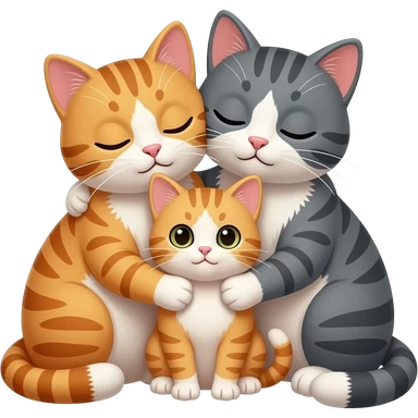 two cats cuddling with a kitten emoji