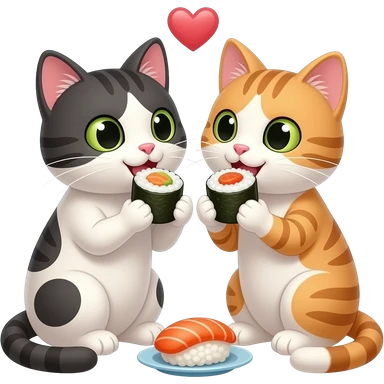 two cats in love eating sushi emoji