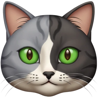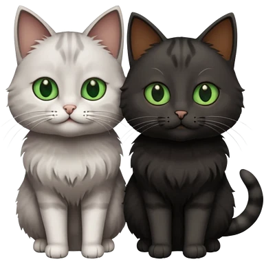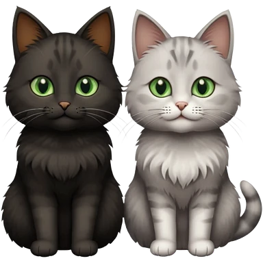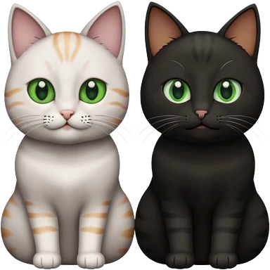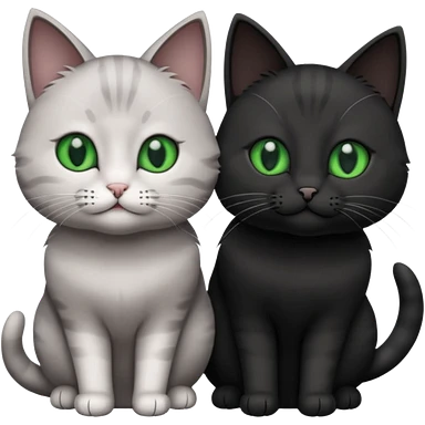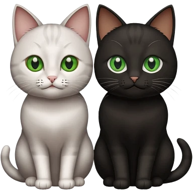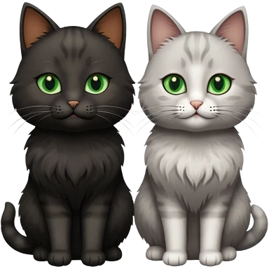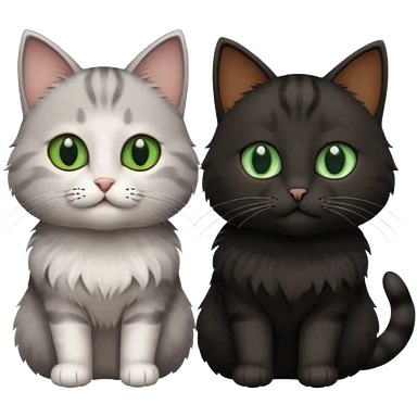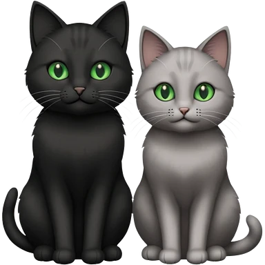 Can you make an emoji of two cats looking at each other, one black with brown eyes and the other gray with green eyes? emoji