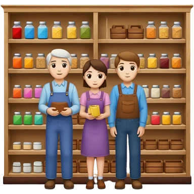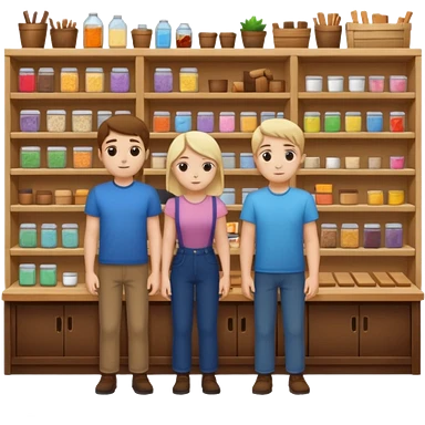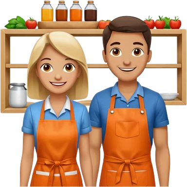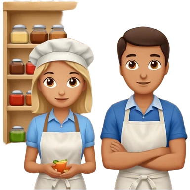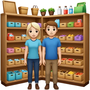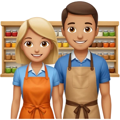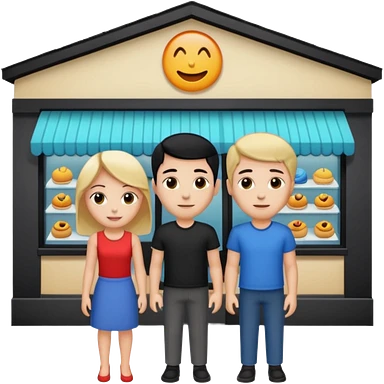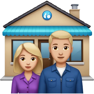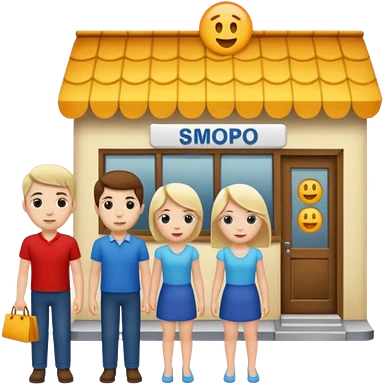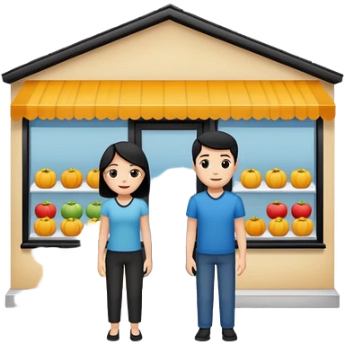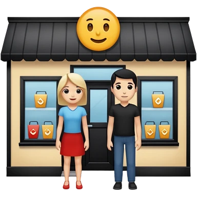 two characters + shop building. No emoji emoji | AI Emoji Generator