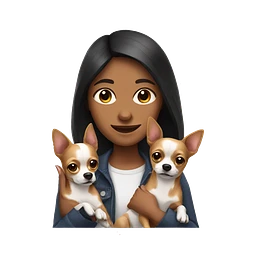 Brunette girl with two chihuahuas: grey and yellow emoji