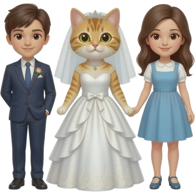 two girls cats and one girl cat in a wedding dress emoji
