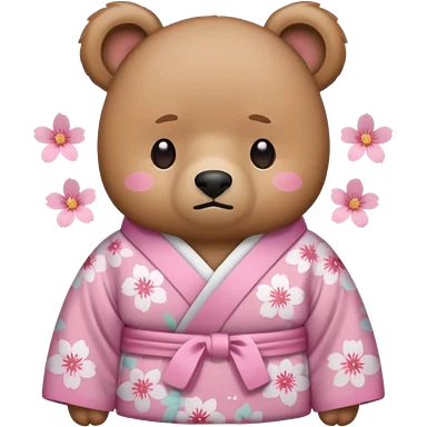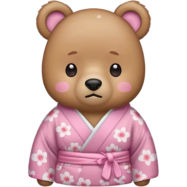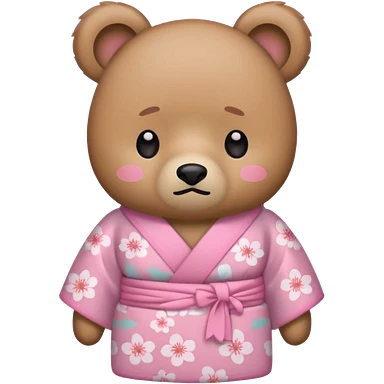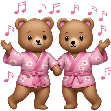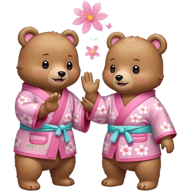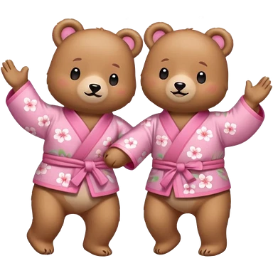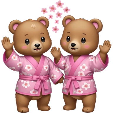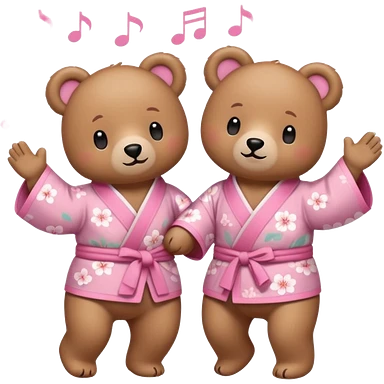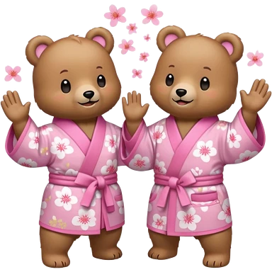 Two cute light-brown bears wearing pastel pink sakura-patterned kimonos, normal balanced body ratio.