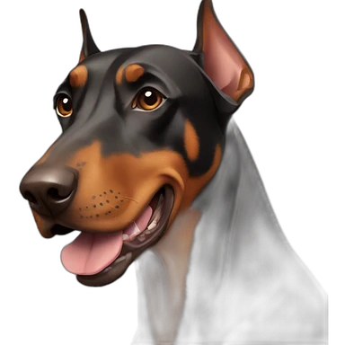Different shades of brown Doberman without cropped ears looking forward and happy emoji