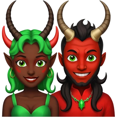 two doctors male and female. male with bald head and black beard with a crown. Female with green eyes long black hair and a crown emoji | AI Emoji Generator