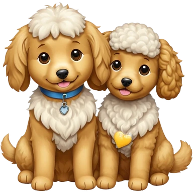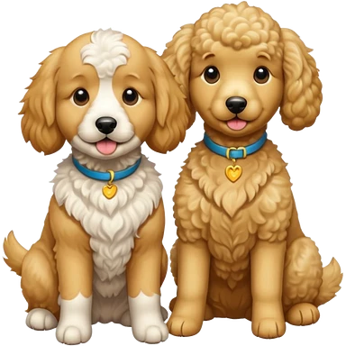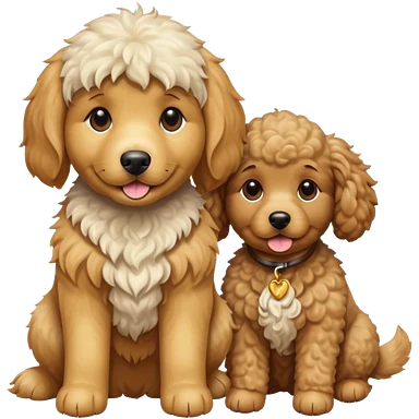 two dogs with wavy hair, one black and one brown with mountains emoji