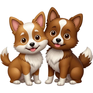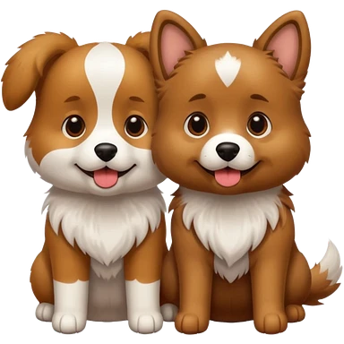 two dogs with wavy hair, one black and brown, one shades of brown with mountains emoji