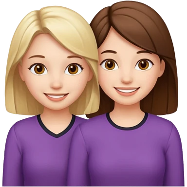 Two best friends .bestie 1: beige skin with brown long hair and blue eye. Bestie 2:mixed race skin with curly black hair and brown eye emoji